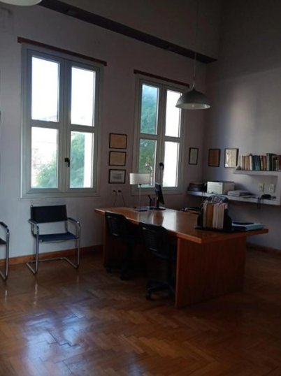 -El dormitorio principal de 6x 4 m al frente, hoy utilizado como estudio, tiene salida a uno de los balcones.