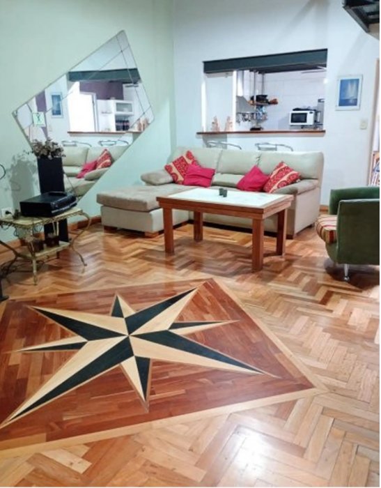 El inmueble te ofrece un living de 6x8 m con pisos de madera de cedro y pinotea.