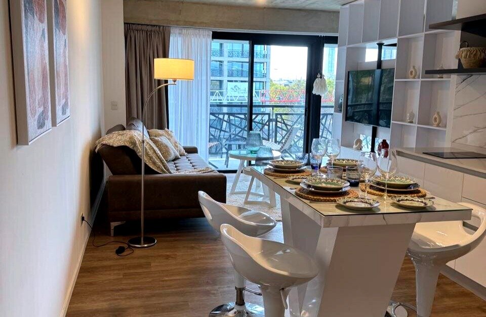 Ubicado en la Torre 2 del complejo Quartier del Bajo, este departamento ofrece una experiencia residencial de alta gama y vistas panorámicas al Río y a Puerto Madero.